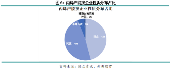 由于PDH装置生产流程短,所需要的生产装置也较少,在产出等量烯烃的前提下,PDH项目的总投资会低于其他生产方式,多数民营企业与合资企业更倾向于选择PDH装置作为丙烯的来源。伴随着PDH装置的集中投放再加上几家民营大炼化企业的投产,民营企业在丙烯产能中的占比大幅提升,从国内丙烯企业类型上来看,截至2024年,民营企业在丙烯产能中的占比已经超过了国有企业,成为丙烯最主要的生产企业。在民营企业中产能占比最大的是浙石化以及东华能源,国有企业则是以中石油和中石化为主。