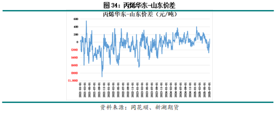 从地区价差来看,丙烯现货的主要集散地是山东以及华东地区,两个地区之间的价格存在关联性,但受到当地供需情况以及运输等因素的影响,山东以及华东地区丙烯的价格调整幅度以及调整频率存在一定的差异性,导致丙烯华东-山东地区价差出现分化。