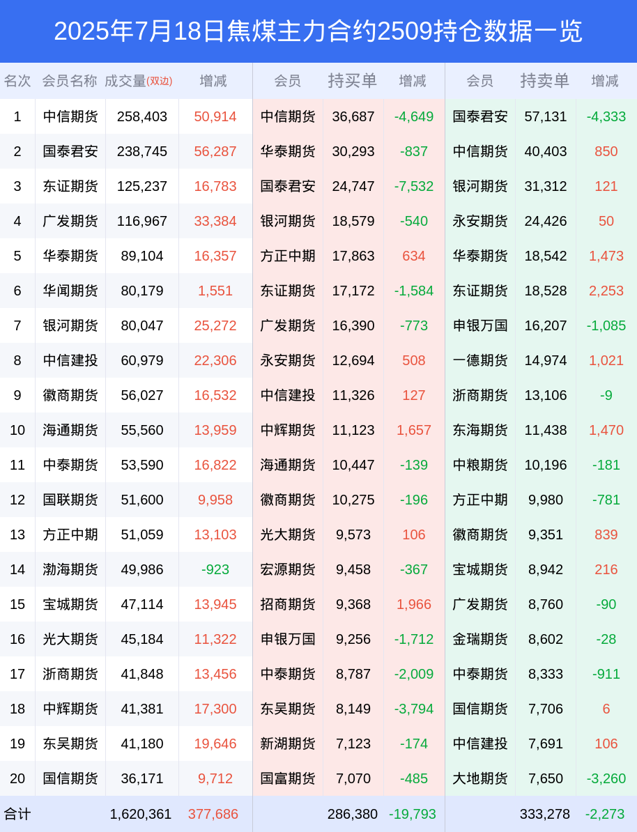 焦煤期货全合约总计成交163.52万手,比上一日新增35.48万手。全合约前20席位多头持仓43.29万手,比上一日减少1.94万手。全合约前20席位空头持仓51.67万手,比上一日增加2442手。