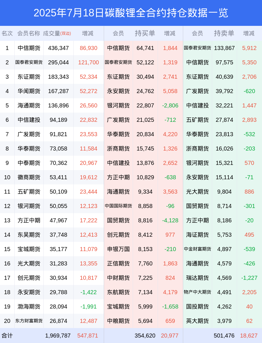 18日碳酸锂上涨2.82%,最新持仓变化