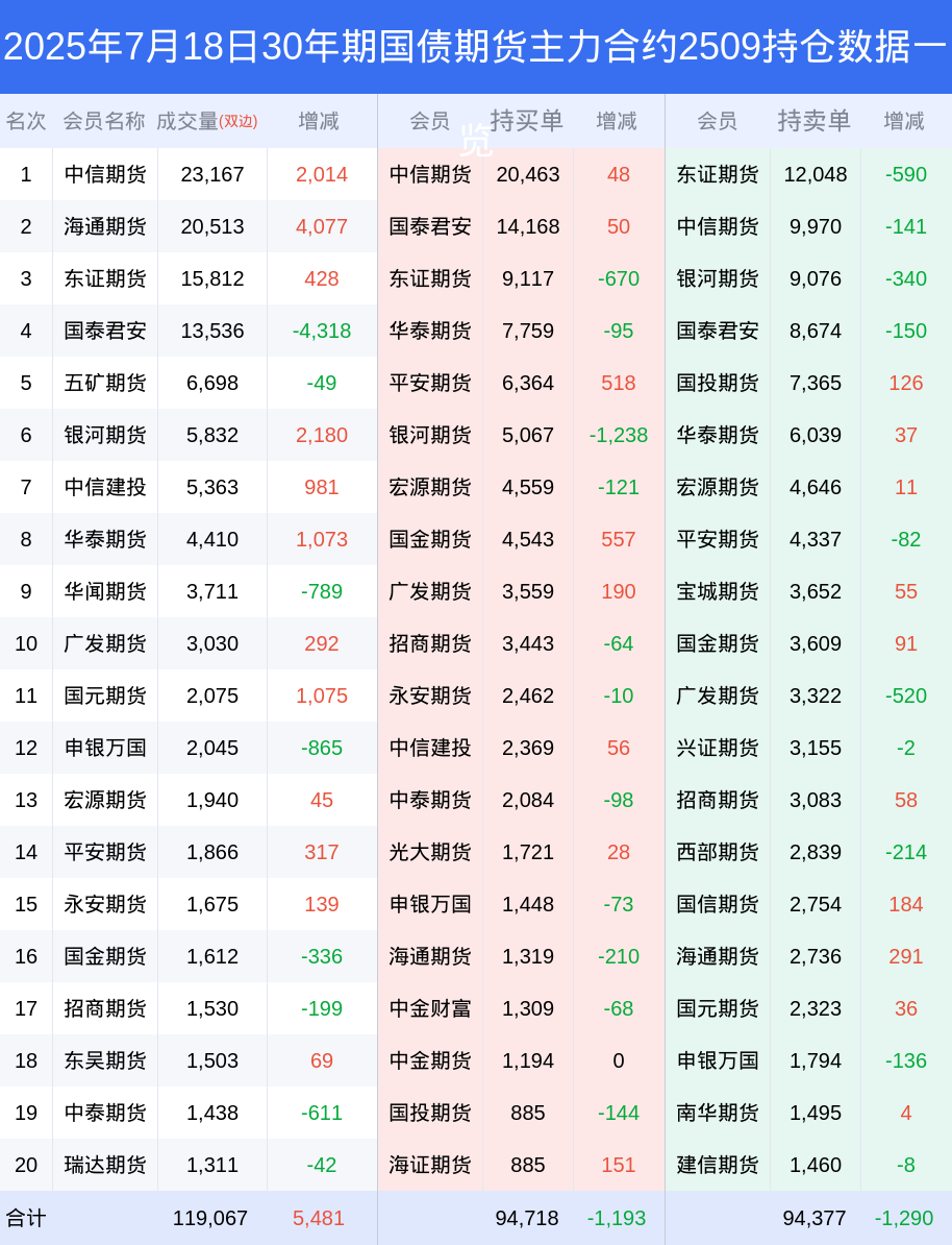 新浪期货 根据交易所数据,截至7月18日收盘主力合约30年期国债期货2509,涨跌-0.22%,成交量7.23万手,持仓数据显示前20席位呈现净多,差额头寸为341手。