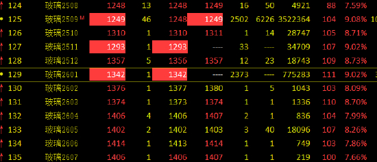 玻璃期货2509、2511、2601合约触及涨停