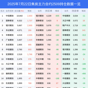 22日焦炭上涨7.98%,最新持仓变化