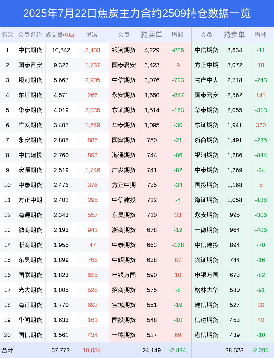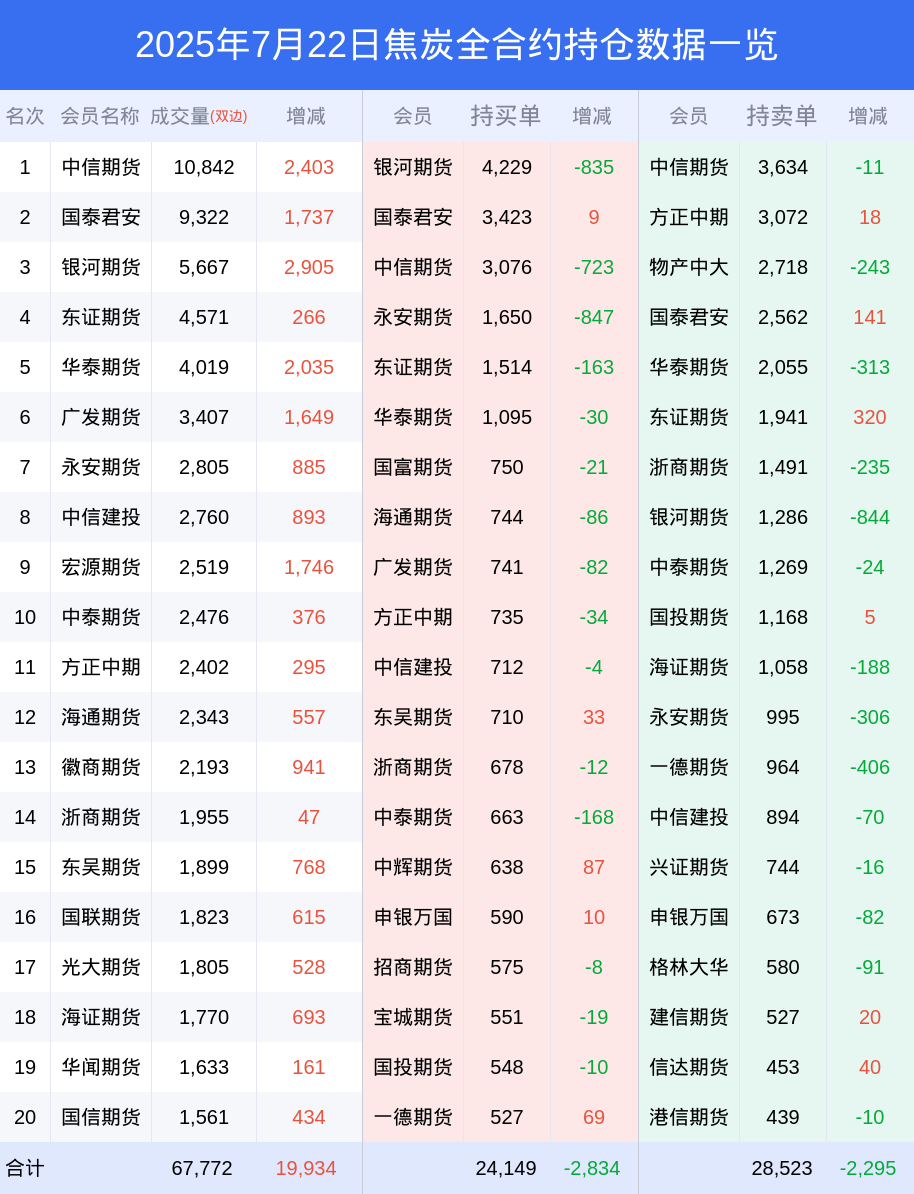 新浪期货 根据交易所数据,截至7月22日收盘主力合约焦炭2509,涨跌+7.98%,成交量5.89万手,持仓数据显示前20席位呈现净空,差额头寸为4374手。