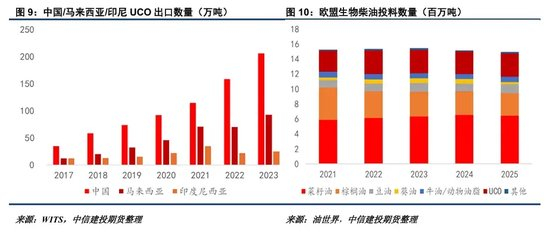 众多压力之下,我们觉得后期EUDR能否如期实施将成为可以跟踪的主要政策线索之一。目前欧洲与中国Class II(原料主要是UCO)HVO的FOB价差在480美元/吨左右,而CLASS IV(原料主要是POME)的价差在525美元/吨左右。如果EUDR持续延期,理论上中国生物柴油产业对欧盟出口的潜力依然存在,可能会变现增加中国UCO需求。若中国可以证明UCO来源于餐厨废弃物,该贸易流确实有发展前景。不过从数据来看,2025年上半年中国生物柴油累计出口约38万吨,离2023年的117万吨有较大距离,基本退回到2020年左右水平。