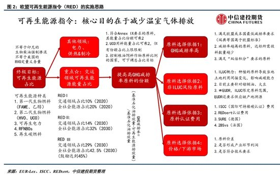 3大限制指限制GHG减排率偏低的原材料、限制GHG减排率达标但引起土地利用变化的原材料、限制GHG减排率达标&不引起土地利用变化但种植生产造成了森林砍伐的原材料。这些限指通俗来说就是打击GHG减排率偏低且引发森林砍伐或粮食用地减少的农作物材料,主要是为了限指东南亚的棕榈油和南美的大豆。同时,由于菜籽、葵籽的GHG减排率也不理想,一定程度上也打击了欧盟本土农作物生物燃料需求。