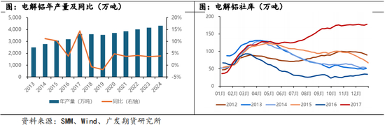 产能严控:2016年6月,国务院发布《关于营造良好市场环境促进有色金属工业调结构促转型增效益的指导意见》,要求电解铝行业严控新增产能,引导不具备竞争力的产能转移退出,产能利用率保持在80%以上;2017年4月《清理整顿电解铝行业违法违规项目专项行动方案》出台,划定“红线标准”。全国共清理违规产能846万吨,其中在建项目立即停工,已建成未审批项目不得投产。最终导致427万吨产能永久关停,200余万吨推迟投产。政策实施后,电解铝产能增速从2014年的12%骤降至2017年的1.8%,首次实现产能负增长。截至2018年底,合规产能上限锁定在4400万吨,形成刚性产能天花板。
