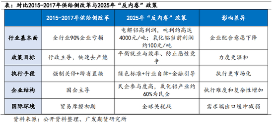 2015-2017年供给侧改革通过行政强制力快速出清产能,在电解铝行业的成效卓越。而2025年“反内卷”政策目前来看更依赖市场化机制和行业自律。这种差异源于行业基本面、企业状态和政策目标的深刻变化。