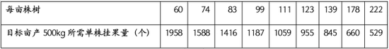 基于每千克枣果235颗的测算值,计算不同密度下实现亩产500kg所需的单株挂果量