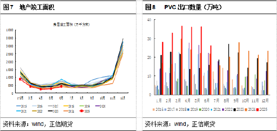 一般竣工端决定PVC当下需求,新开工决定未来需求预期,前两年新开工的持续走弱,后续地产链对PVC需求仍有走弱可能。去年至今地产政策依旧集中于“控增量、降存量、提质量”,今年销售端降幅虽有收窄,但尚未同比转正,若未来销售端未能传导至新开工端,PVC需求预期难以改善。