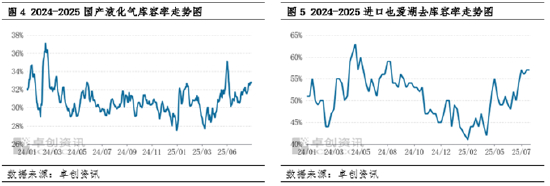 截至7月29日的统计数据显示,LPG炼厂月末库容率为32.18%,较上月末上升1.04个百分点;进口气方面,截至7月24日,本月末国内主港平均库容率达55.50%,较上月末均值升高3.71个百分点。