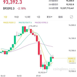 昨夜今晨,比特币直线跳水,从10万美元附近直线下跌,一度跌破93000美元大关。截至发稿,比特币报93392.3美元,下跌2.18%。