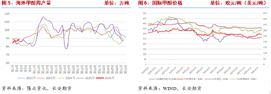 原料方面,上周煤价持续回落,跌幅逐步收窄,下游维持少量刚需采购,成交僵持。供给端,钢联统计上周全国462家矿山产能利用率89.6%,环比减1个百分点,日均产量541万吨,环比减5.7万吨。本月进入新的生产周期,部分上年底因完成年度任务而暂停产销的煤矿陆续恢复正常生产,但个别民营矿提前进入春节假期停产停销,另有少数国有矿1月份因生产任务量低而减产,进入2月后,停/减产煤矿将进一步增多。需求端,今年冬季整体气温较往年偏暖,电厂日耗提升水平有限,且库存较安全,采购积极性不足,但近期寒潮天气频繁,中央气象台预报,25日起冷空气将影响我国中东部地区,冬季刚需仍存;非电方面,煤化工企业开工率较高,建材板块进入错峰生产季,需求有限。综上看,煤炭上行驱动不强,但当前价格已处相对低位,随着后市临近春节,减产煤矿将逐步增多,加之刚需支撑,供需边际改善,煤价继续下行空间有限。天然气价格方面,国内天然气供应相对稳定,重庆地区天然气制甲醇装置成本未出现波动,海外市场受北美极端寒潮影响,天然气价格大幅上涨,带动轻烃产品价格走强,对国内市场形成情绪传导。