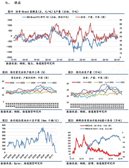 【3】短期展望:今日沥青日内低位震荡,接近回吐了1月28日的大阳线涨幅。但其跌幅相对油价而言更为抗跌,SC当天日内收盘跌幅4.93%。最新消息来看,美国将对印度关税降至18%,莫迪也已承诺印度将停止购买俄罗斯石油,转而大幅增加从美国的石油进口,同时不排除从委内瑞拉采购石油。在2019年未受美国全面制裁前,委内瑞拉原油有将超20%出口至印度(2013-2018年平均),量级平均在38万桶/天。因去年12月美国加码制裁俄罗斯油轮影响,印度自12月以来进口俄罗斯原油有所下降,最新1月份录得126万桶/天,对比委内瑞拉的补充量来看相对小,同时委内的产量增长仍需时间。