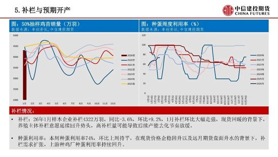 展望后市,由于春节后是传统的消费淡季,叠加目前较高的库存压力,现货价格预计相对弱势。然而,从中期视角看,若节后的低蛋价行情持续,将继续削弱养殖端的补栏积极性,从而加速产能的自然淘汰。从蛋鸡养殖周期推算,预计从第二季度开始,24年下半年集中补栏蛋鸡有望迎来淘汰,市场供需格局有望迎来边际改善,价格运行中枢可能会随之逐步抬升。