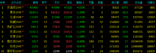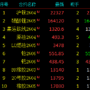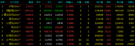 2026年2月24日,国内期货主力合约涨多跌少。沪银涨超12%,碳酸锂涨超10%,集运欧线、SC原油涨超6%,低硫燃料油(LU)、铂涨超5%,钯、丁二烯橡胶张超4%。跌幅方面,多晶硅跌超4%,焦炭、生猪跌超2%。