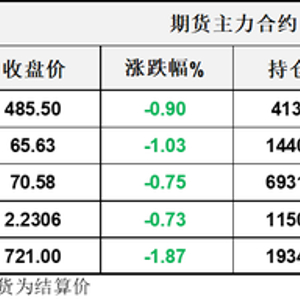 【1】WTI主力原油期货收跌0.68美元,跌幅1.03%,报65.63美元/桶;布伦特主力原油期货收跌0.53美元,跌幅0.75%,报70.58美元/桶;INE原油期货收跌0.9%,报485.5元。
