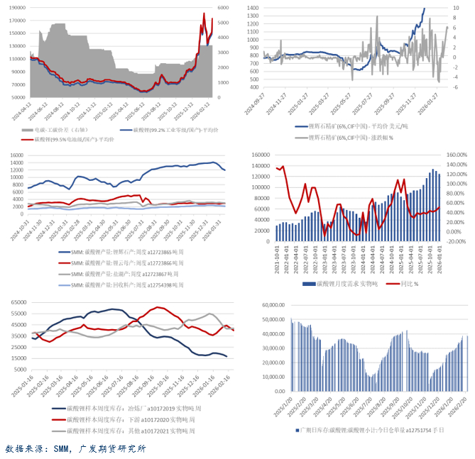 基本面来看,暂无明显超预期变动,目前现实表现较节前预期比较一致。从节前一个月内的数据表现来看,受季节性检修影响,周度产量数逐周减少,锂辉石减量幅度较大,云母和盐湖整体持稳小减为主,供应下滑幅度整体符合预期,节后伴随开工率提升预计产量有所增加。需求整体维持乐观预期,今年季节性影响弱化,下游需求保持韧性,在刚性订单之下材料开工预计仍稳健,节日期间下游仍有部分开工,目前电芯和材料在排产预期环减幅度低于往年。库存来看,近期社会全环节维持2000吨以上去库,上游冶炼厂库存节前进一步减少,下游有一定量补库,电芯厂和贸易商库存继续下降,3月中旬前预计仍维持去库。