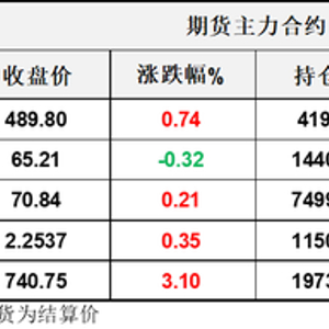 【1】WTI主力原油期货收跌0.21美元,跌幅0.32%,报65.21美元/桶;布伦特主力原油期货收涨0.15美元,涨幅0.21%,报70.84美元/桶;INE原油期货收涨0.74%,报489.8元。