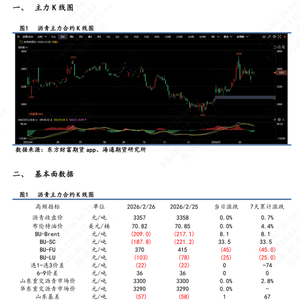 【4】短期来看,近期委内浮舱有所上行,具体目的地尚未明朗,但概率性流向印度市场偏多。鉴于美国介入委内后出口端表现合法增加,中国也将与印度进行竞争,这种情况或许会在后期有所体现,对沥青而言是成本抬升的博弈。短期来看,沥青走势仍受地缘变化影响。关注2月26日美伊最新一轮谈判结果。在美伊关系缓和之前,地缘政治风险将呈现高压状态,油价偏强预期下沥青或偏强运行。