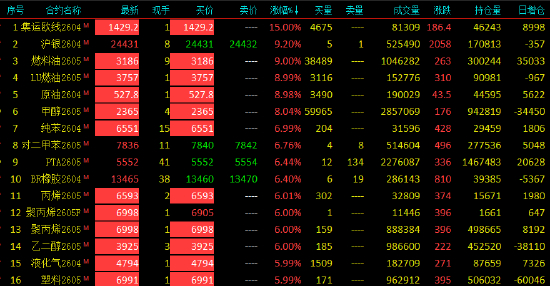收评|国内期货主力合约大面积飘红 12品种封涨停