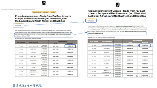 本轮上涨的核心驱动在于地缘冲突远超预期带来的全球航运供应链的“不确定性”。航运属于重资产、长周期、固定成本极高的行业,其经营与定价模式,决定了它对不确定性的耐受度远低于其他行业。一旦供应端出现黑天鹅扰动(疫情、红海危机),不同于传统大宗商品,航运业成本刚性极强,供给调整落后(新船建造周期长达 2–3 年,航线布局、运力投放、租船决策均需提前规划),也没有传统商品的库存做为缓冲,因此短时内的混乱均会推升海运费大幅波动。因此我们可以看到,客观来说,海峡封锁从实际基本面上传导至欧线需要时间(即货量超收爆仓/运力缺乏),且昨日3.2日同时存在MSC宣涨(4000美金/大柜)与YML线下降价揽货的情况(1800美金/大柜),但由于淡季价格的相对低位,以及期货市场预期先行,在当前混乱的地缘局势下,脆弱的集运市场犹如惊弓之鸟,短时间打开了上涨的空间与想象力。