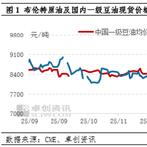 北京时间2月28日,美国和以色列对中东某国发动军事打击,随后局势进一步扩大,导致中东部分石油设施关闭,同时霍尔木兹海峡通行受阻,原油供应担忧扩大,导致原油期价宽幅走高。截至3月2日布伦特原油结算价收于77.74美元/桶,较上一交易日涨4.87美元/桶,涨幅6.68%。原油领涨下,作为替代品的生物柴油原料端植物油市场跟随上涨,植物油外盘走高带动国内油脂市场跟随上扬,但由于本身供需面制约,原油波动造成的豆油走高幅度相对其他油脂反馈有所受限。截至3月3日,国内一级豆油均价8619元/吨,环比上一交易日上涨0.54%。