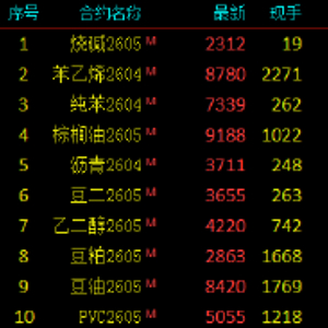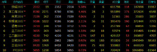 2026年3月6日,早盘开盘,国内期货主力合约涨跌不一,烧碱涨超5%,苯乙烯(EB)、纯苯涨超4%,棕榈油涨超2%。跌幅方面,集运欧线跌超8%,沪铝跌近3%,铝合金、SC原油跌超2%,沪锌跌近2%。