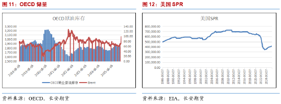 而在基本面之外,近期IEA与G7国家宣布将进行4亿桶的创纪录释储。IEA在周三表示,其32个成员国将从紧急储备中释放4亿桶石油,这也是自1973年石油禁运事件后该机构成立以来,规模最大的一次协同抛储行动,其中美国将承担1.72亿桶SPR的释放。尽管该消息从规模数量上来看很具有冲击,但对市场影响力度却十分有限,主要原因有四:一,释储国家主要集中在G7国家之中,这些国家不仅坐拥大量的储备,也是大型的消费区域,这意味着他们释放的原油储备将核心用于满足自身的消费,并不会有过大的数量流入市场。二,尽管释储的规模庞大,但如此大数量的石油很难在短期内迅速流入市场,仅从美国能源部的公告来看,本次的SPR释放将在120天内陆续完成,这意味着尽管后续美国市场不会面临明显的供给缺口,但也不会在短期内完全抹去市场的缺口。三,释放的储备原油品类并不能完全覆盖市场的需求,这主要是由于中东的炼油厂主要依赖重质及中质石油来炼化出如燃油的产品,而G7国家的战略储备多以轻质原油为主,这无法满足中东的炼厂需求。四,4亿桶的石油尽管从数量上来看并不小,但对标霍尔木兹海峡停运一天带来的2000万桶的缺口,这仅能满足市场20天的缺口总量,即便这4亿桶一口气释放,在一个月后也将迅速见底。因此对于市场来说,本次释储决定的出炉可谓是雷声大雨点小,很难在短期内直接压制油价的上涨。