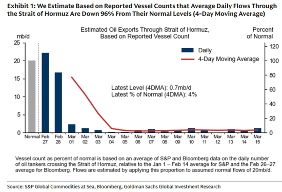 霍尔木兹仍然实际封锁,通行油轮量级仅70万桶日。