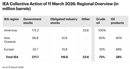 IEA成员国预计共释放4亿桶石油及产品补充,其中原油量级2.88亿桶,产品1.12亿桶。