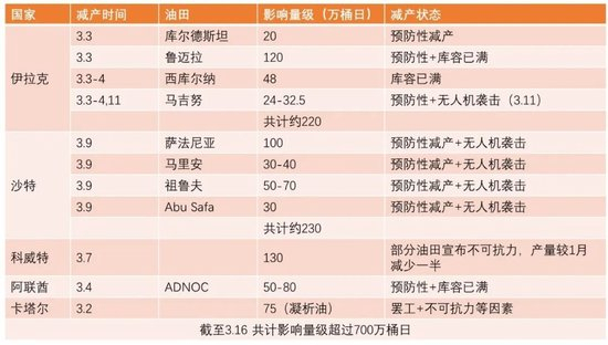 产量冲击已超700万桶日,随着时间推移,减产量级会进一步扩大。
