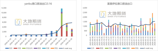 3月16日当周,库存+管输量集中loading,出口量级达到1100万桶日,但考虑yanbu港口的装载能力在350-400万桶日,后续单周的出口量会有所回落。