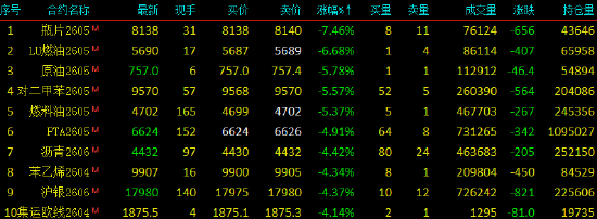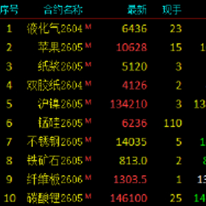 2026年3月20日,早盘开盘,国内期货主力合约跌多涨少,液化石油气LPG)涨超5%,纸浆、苹果、烧碱、双胶纸、丙烯涨超1%。跌幅方面,瓶片、SC原油、低硫燃料油(LU)跌超6%,沪金、PX跌超4%,PTA、燃料油跌超3%,沪铝、苯乙烯跌近3%。