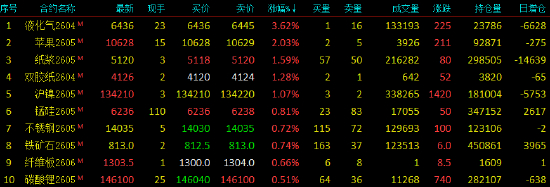 开盘|国内期货主力合约跌多涨少 液化石油气(LPG)涨超5%