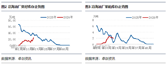 截至2026年4月17日,沿海地区主要油厂菜籽原料库存参考24.10万吨,较上期数据增加10.10万吨,增幅72.14%;沿海油厂菜粕现货库存量参考2.00万吨,较上期数据减少0.20万吨,降幅9.09%。