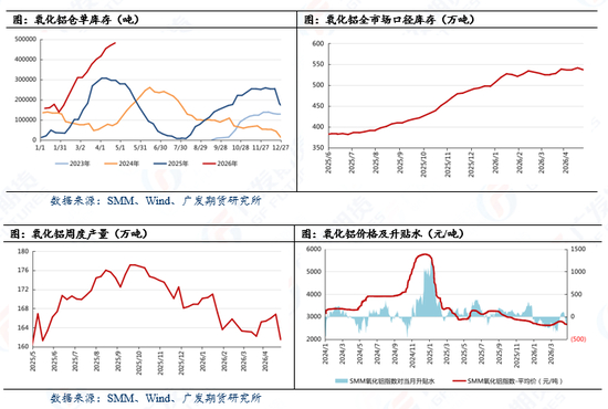 供给端,上周阶段性去库主要源于广西某大厂焙烧设备故障导致的被动压产,属于一次性冲击,据企业公告,故障设备预计两周内恢复运行,对应产量损失约10万吨级别,对中期供需平衡表的边际影响有限。更长视角来看,二季度仍有超200万吨新产能待投放,广西另外两家企业的低成本产能处于出料爬坡阶段,山西部分前期压产产能亦计划于5月中下旬复产,合计涉及年产能约520万吨。需求端,国内电解铝运行产能年内增量仅约70万吨,难以匹配氧化铝供给端的扩张节奏,供需宽松格局年内难以扭转。