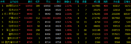 2026年4月29日,早盘开盘,国内期货主力合约涨多跌少,合成橡胶、瓶片、PX涨超2%,沪镍涨近2%。跌幅方面,沪银跌超2%,沪金、铂跌超1%。