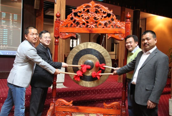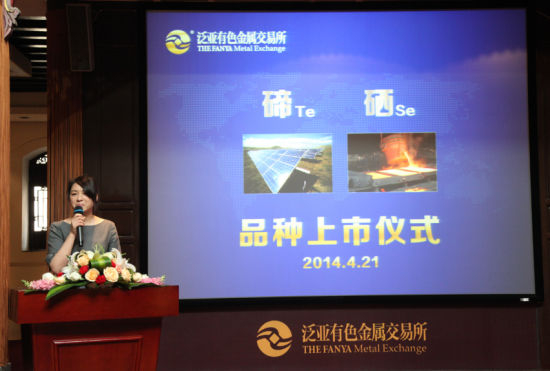 2014年4月21日,正值泛亚有色金属交易所开市三周年。上午11点,董事长总裁单九良、贵溪大三元总经理吴世军、广东先导副总经理朱世彬、湘潭炬荣科技总经理赵铁光四位企业家共同敲锣,行业内20多名企业家共同观礼,新品碲和硒粉正式挂牌发售。