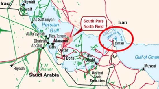 隶属于伊朗的霍尔木兹海峡是全世界最主要的原油“咽喉”要道,被西方誉为“海上生命线”。据美国能源信息署2013年数据,每天经过这条海峡的原油多达1700万桶,约占全球海上石油贸易量的30%。来自沙特、阿联酋、卡塔尔、伊朗和伊拉克的原油全部都要通过这条海峡交付给国际买家,多数流向亚洲。