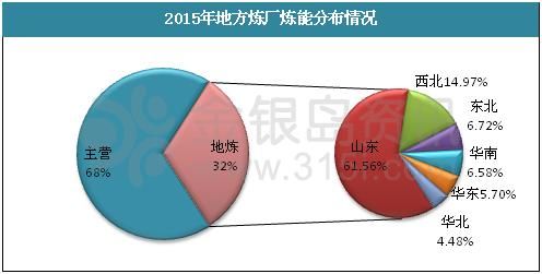 截止到2015年10月,据金银岛统计数据显示,我国炼化行业总炼能已经达到7.85亿吨/年,其中地炼总产能在2.50亿吨/年,占比我国总炼能的32%。其中地炼方面,除去多年长期停工的炼厂,我国目前共有有效炼厂数目在113家,平均炼油能力达到221万吨/年。就地炼分布而言,我国地方炼厂分布不均衡,主要集中在山东、陕西、辽宁、河北等地区,而山东地炼以其充足的加工能力以及装置规模位于地炼首位。据金银岛统计,就炼油能力方面,截止2015年10月,山东地炼总炼能达到15400万吨/年,炼能占全国地炼比重的64.56%。 就地炼数量方面统计,山东地区规模以上炼厂共有36家,在全国地炼中也占有绝对优势。但随着近些年地炼产能迅速上升,原料争夺现象日趋激烈、开工率及盈利水平均有下降。就山东地炼而言,每年常减压平均开工率仅在30-40%水平。
