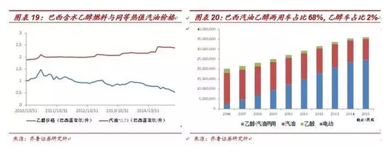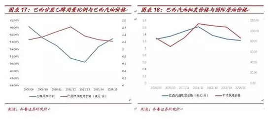 然而,我们认为乙醇与汽油的替代效应仍然存在,只是使用乙醇的比价始终处于汽油的下方,而巴西多年来在国内成功推广生物燃料已深入人心。我们认为,或许还应当结合汽车的两用燃油装置周期的角度理解乙醇需求的稳定增长: