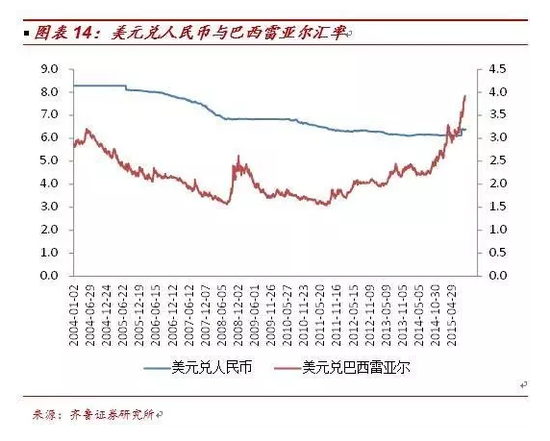 巴西是世界第一大甘蔗种植国,在巴西各个地区基本都有甘蔗出产,其中南部的甘蔗和蔗糖产量占全国的90%左右,特别是圣保罗州,蔗糖产量占比达到60%。巴西在过去的2014/2015榨季共产糖3585万吨(UNICA数据为3555万吨),产量全球占比20.57%;出口量2455万吨,占比全球出口量的45.33%。此外,巴西雷亚尔汇率自2011年起持续贬值,也有助于增强其出口竞争力。