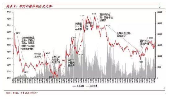 纵观白糖期货的历史价格走势,我们将主要推动糖价涨跌的几个主要因素总结为: