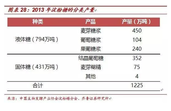 生产果葡糖浆不受地区和季节限制,设备比较简单,投资费用较低,在食糖高企、原材料玉米价格低迷的大环境下迅速扩张,2012年国内设计产能达350万吨以上。淀粉糖的产量在2013年到达一个高点,累计各项淀粉糖产量1225万吨,其中作为食糖的主要工业替代品果葡糖浆产量为240万吨;以果葡糖浆F55的甜度、75%质量浓度为例,则可替代蔗糖198万吨。