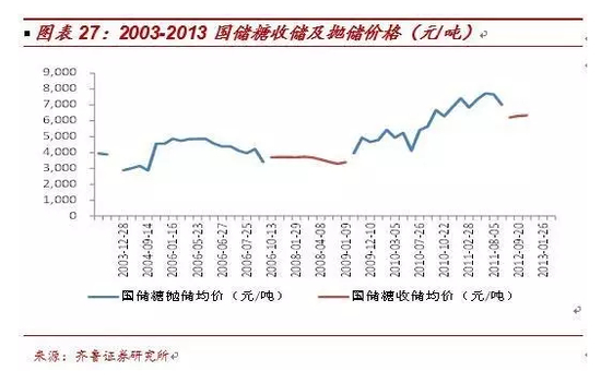 除了自由流通的工业库存之外,食糖的国家储备也是举足轻重的库存组成部分。食糖的国家储备是调控白糖价格波动的主要手段,同时兼有战略储备的意义。我国的白糖收储政策自2002年国家计委、国家经贸委、农业部、国家工商总局联合制定了《糖料管理暂行办法》开始,多次参与糖市价格平抑,但总体收抛储的目标和效果而言,国家收储政策的重任并不在扭转趋势而在于相对平滑价格的波动。