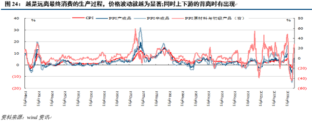 对于康波而言,商品价格的剧烈波动是其有别于其他周期的重要特征,而这种价格的剧烈波动主要集中于从衰退到萧条的阶段,罗斯托的观察描述了这种康波价格波动的基本特征,即价格的波动在一个很短的时间内急剧放大,从而最终对经济造成冲击,这实际上就是所谓的康波衰退的冲击,而这种冲击一般集中于康波衰退期,但在第四波康波中,冲击贯穿于整个衰退和萧条。