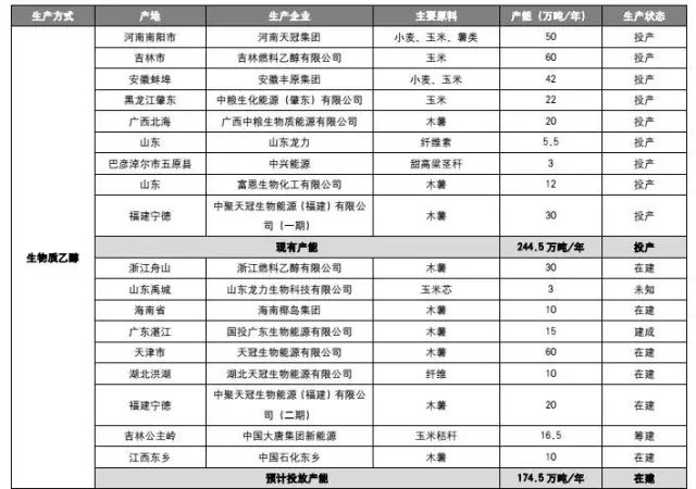 目前我国已投产的生物质燃料乙醇产能约为 244.5 万吨,已投产的煤制乙醇产能约为 85.3 万吨,预计未来 1-2 年内投放的生物质燃料乙醇产能约为 174.5 万吨,煤制乙醇产能为 52 万吨。
