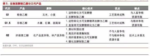 分别对应三代燃料乙醇产品,即 G1,G1.5 和 G2。
