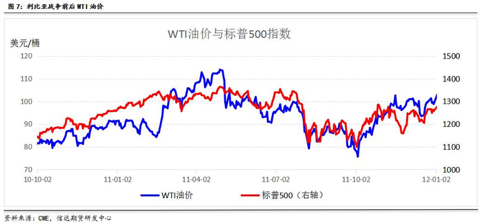 再次,经过数次石油危机的冲击后,世界主要原油消费国都已建立了石油安全保障体系,因此弱化了石油短缺对于主消费国的影响。美国股市在利比亚战争期间走势与原油基本保持一致,这说明此次油价的波动是供需格局和宏观经济共同作用的结果,综合来看,从战争开始至结束,标普500指数下跌8.9%。